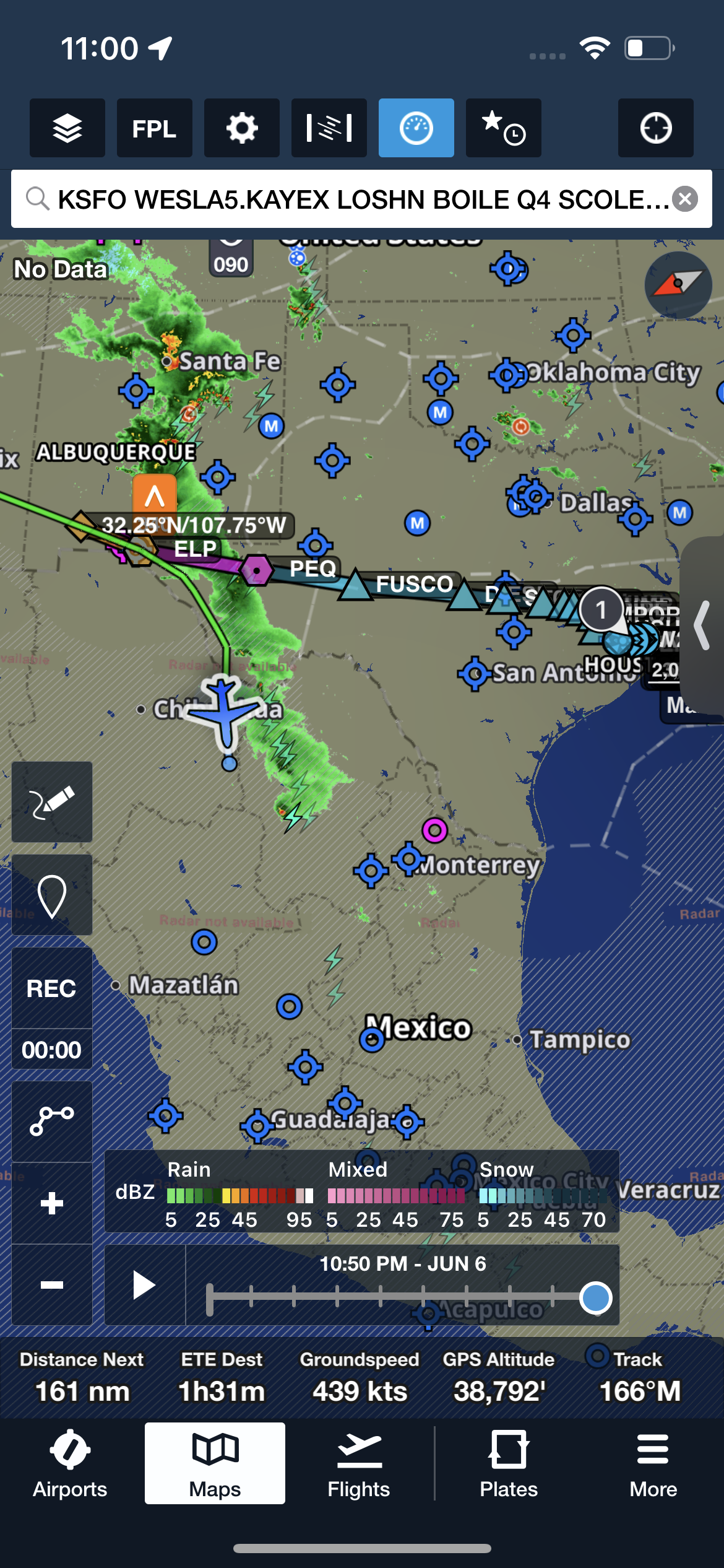 Combined with the free app FlightAware, it will import your flight’s planned route directly into ForeFlight so it makes it really simple to see where you are.